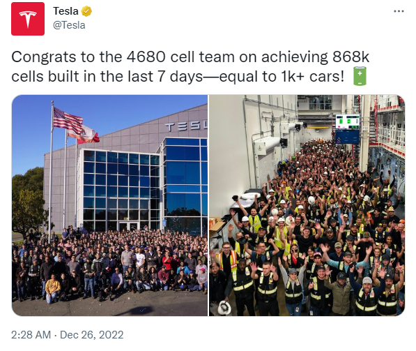 The 4680 battery cell is a new format that Tesla developed in-house and is a key component of the company’s EVs. The fact that Tesla has been able to ramp up production of these cells to such a high level suggests that the company is making progress in increasing its manufacturing capabilities and improving the efficiency of its production processes.
