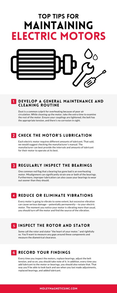 Lubrication: Lubricating the moving parts of the motor can help to reduce friction and wear, which can extend the lifespan of the motor.