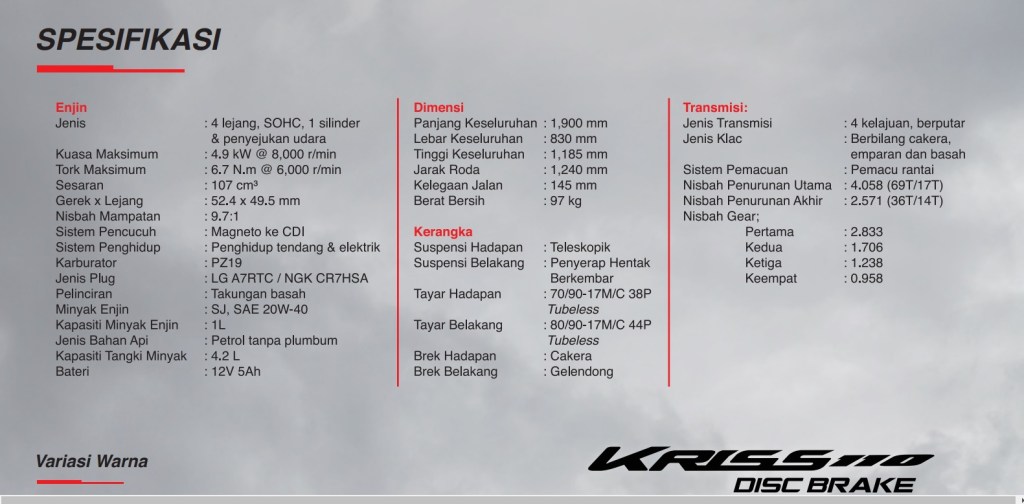 Modenas mengumumkan pembaharuan untuk varian Kriss 110 dan Kriss 110 “Disc Brake” 2023.