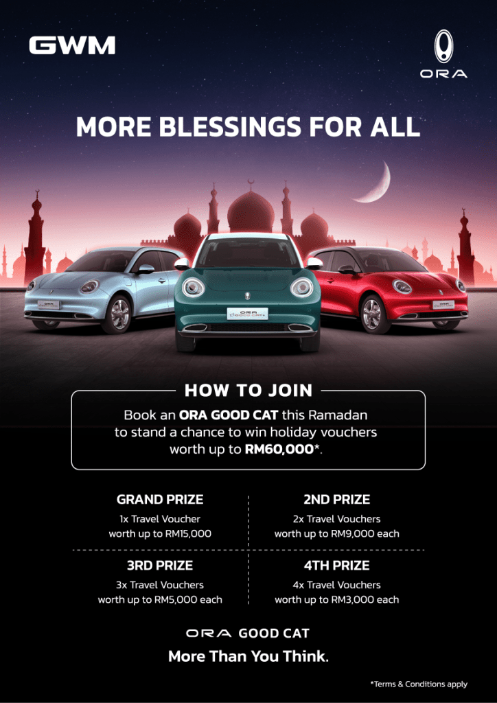 To participate in the lucky draw, all customers need to do is book an ORA GOOD CAT by April 30th, 2023, and they will be automatically entered. Great Wall Motor Malaysia is committed to providing customers with the best driving experience and after-sales service, offering only the best Ramadan holiday package deals for potential buyers.