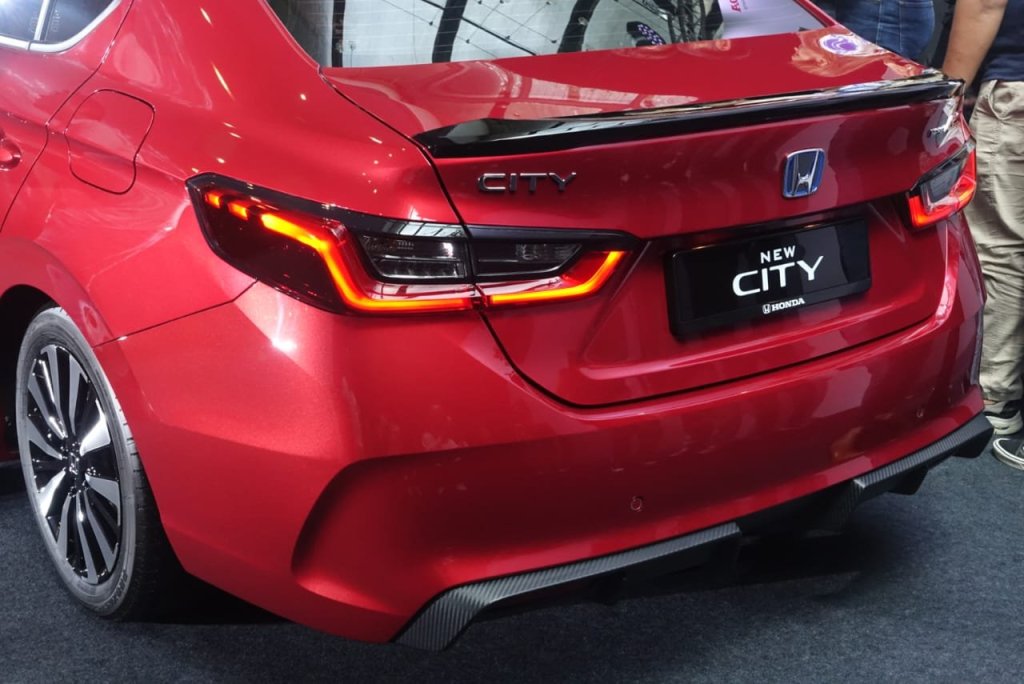 Rekaan RS yang unik pada Model City Terbaru merangkumi rekaan Honeycomb Front Grille baru, Front Lower Grille baru, Rear Diffuser baru, Side Skirting baru, dan emblem “RS” yang direka semula. Ciri-ciri luar sporty lain bagi Model City Terbaru termasuk Bumper Depan baru, Bumper Belakang baru, dan Rim Alloy Dual-Tone 16 inci*1 yang baru. Varian Petrol RS dan e:HEV RS bagi Model City Terbaru kini lebih panjang dengan rekaan bumper yang diperbaharui, berukuran 4,589mm manakala varian S, E, dan V adalah 4,580mm.