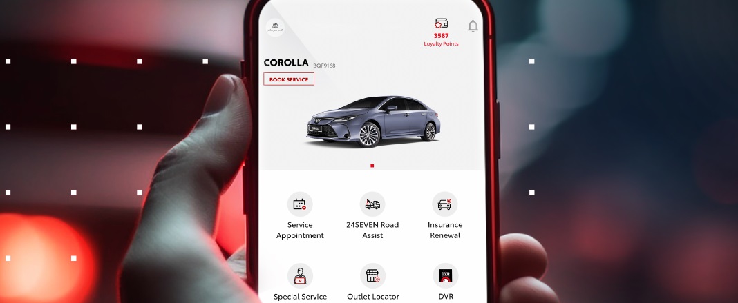Aplikasi Toyota MY ini dengan lancar menggabungkan fungsi-fungsi dari aplikasi Toyota sebelumnya ke dalam antara muka yang mudah digunakan, memberi kuasa kepada pemilik Toyota untuk dengan mudah mengakses maklumat penting tentang kenderaan mereka, menjadualkan temujanji perkhidmatan, melihat mata ganjaran keahlian Loyal-T mereka, meminta bantuan tepi jalan 24Seven, mencari outlet Toyota berdekatan, dan banyak lagi.