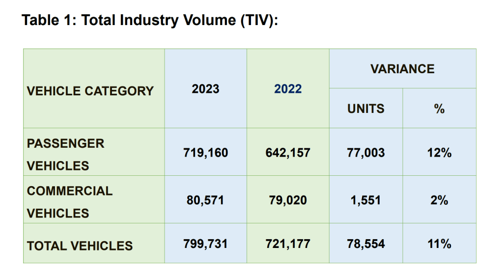 Persatuan Automotif Malaysia (MAA) mendedahkan bahawa TIV mencapai jumlah yang membanggakan iaitu 799,731 unit, menandakan peningkatan sebanyak 11% daripada angka 2022 iaitu 721,177 unit.