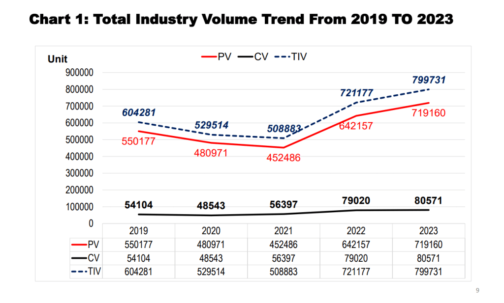 - Jumlah Industri Keseluruhan (TIV) pada 2023 mencecah 799,731 unit, peningkatan sebanyak 11% dari tahun 2022.