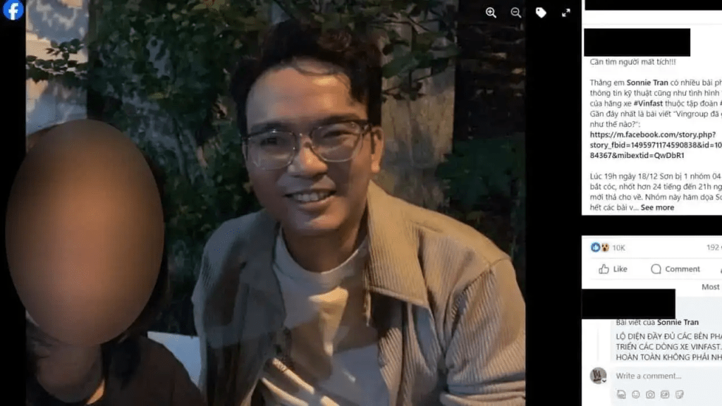 Menurut laporan portal Inside EV, Seorang youtuber yang mengkritik kereta VinFast di Vietnam telah hilang dan dipercayai ditahan oleh polis. Sonnie Tran, hilang selepas mengkritik syarikat itu, dipercayai ditangkap polis. Dia disyaki disoal siasat berikutan kritik terhadap VinFast, menimbulkan kebimbangan keselamatan dalam kalangan rakan-rakan. Difahamkan dia turut menerima ancaman sebelum ini.