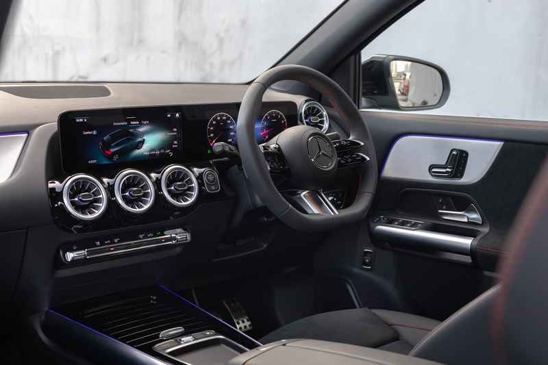 GLA 250 4MATIC menampilkan tempat duduk sukan dengan upholsteri kulit tiruan ARTICO/MICROCUT mikrofilem. Hiasan aluminium butiran membujur ringan memberikan rupa individu kepada dalaman. Stereng sukan pelbagai fungsi dibalut dengan kulit Nappa. DYNAMIC SELECT yang boleh diakses melalui panel kawalan sentuhan stereng atau paparan tengah menawarkan program pemanduan yang berbeza dengan pilihan tetapan untuk enjin, transmisi, suspensi, dan stereng.