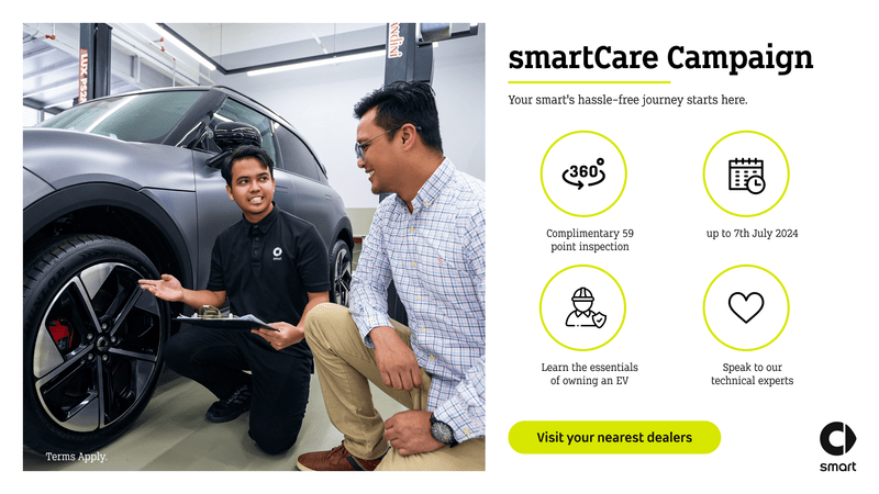 smart Malaysia dengan bangga mengumumkan pelancaran smartCare, sebuah program perkhidmatan aftersales maju yang direka untuk memastikan kesesuaian jalan semua kenderaan smart dan memberikan sokongan proaktif kepada pemilik smart sedia ada. Program komprehensif ini merangkumi pelbagai perkhidmatan dan ciri yang bertujuan untuk meningkatkan pengalaman pemilikan premium dan mengekalkan standard keselamatan dan kebolehpercayaan tertinggi.