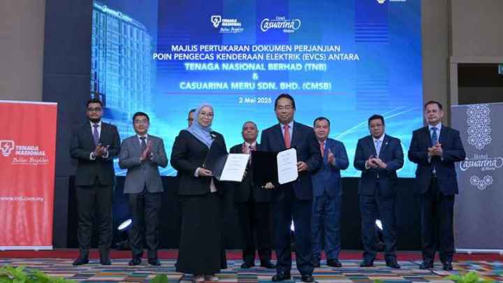 IPOH – Usaha Malaysia untuk mencapai sasaran 10,000 titik pengecasan kenderaan elektrik (EV) menjelang tahun 2025 terus mendapat momentum dengan kerjasama strategik terbaharu antara Tenaga Nasional Berhad (TNB) dan Hotel Casuarina@Meru. Perjanjian yang dimeterai hari ini menyaksikan TNB akan memasang kemudahan pengecasan EV di hotel yang terletak di Ipoh ini, sekaligus memperkukuh infrastruktur pengecasan di negeri Perak.