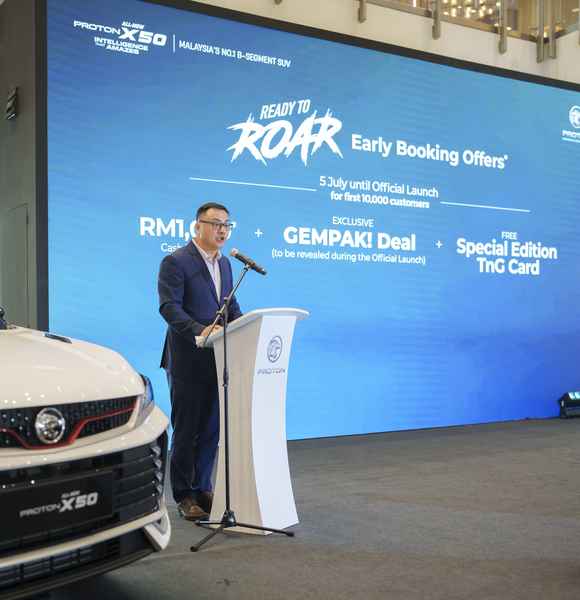 Proton mengumumkan pembukaan tempahan melalui majlis di Setia City Mall dengan tema “All-New Proton X50: Ready to Roar”, sambil menawarkan pakej ganjaran menarik kepada pembeli terawal SUV segmen-B yang telah menjadi penjual terlaris di Malaysia selama lima tahun berturut-turut.