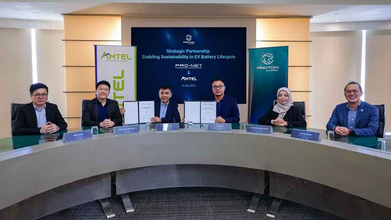 Anak Syarikat tenaga baharu Proton, PRO-NET hari ini menandatangani memorandum persefahaman dengan AMTEL Cellular Sdn Bhd bagi menangani cabaran pelupusan bateri kenderaan elektrik yang dijangka mencapai 870,000 unit menjelang 2050 di Malaysia.