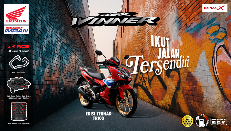 Selain penampilan baharu yang berani dan aksesori premium, RS-X Winner Tricolor Edition menawarkan nilai lebih besar dengan waranti pengeluar dua tahun atau 20,000km (yang mana lebih awal), ditambah liputan perbatuan tanpa had satu tahun tanpa kos tambahan di bawah kempen Honda X-tend. Promosi ini tersedia sehingga 31 Disember 2025.