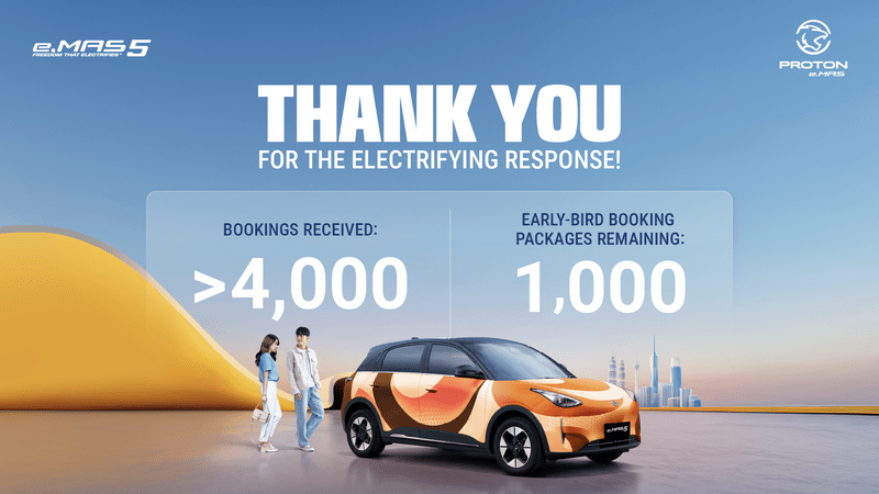 Sementara itu, Proton e.MAS 5 telah melepasi 4,000 tempahan sejak dibuka untuk tempahan, menandakan keyakinan pasaran yang kukuh terhadap kenderaan elektrik mampu milik pertama Malaysia.