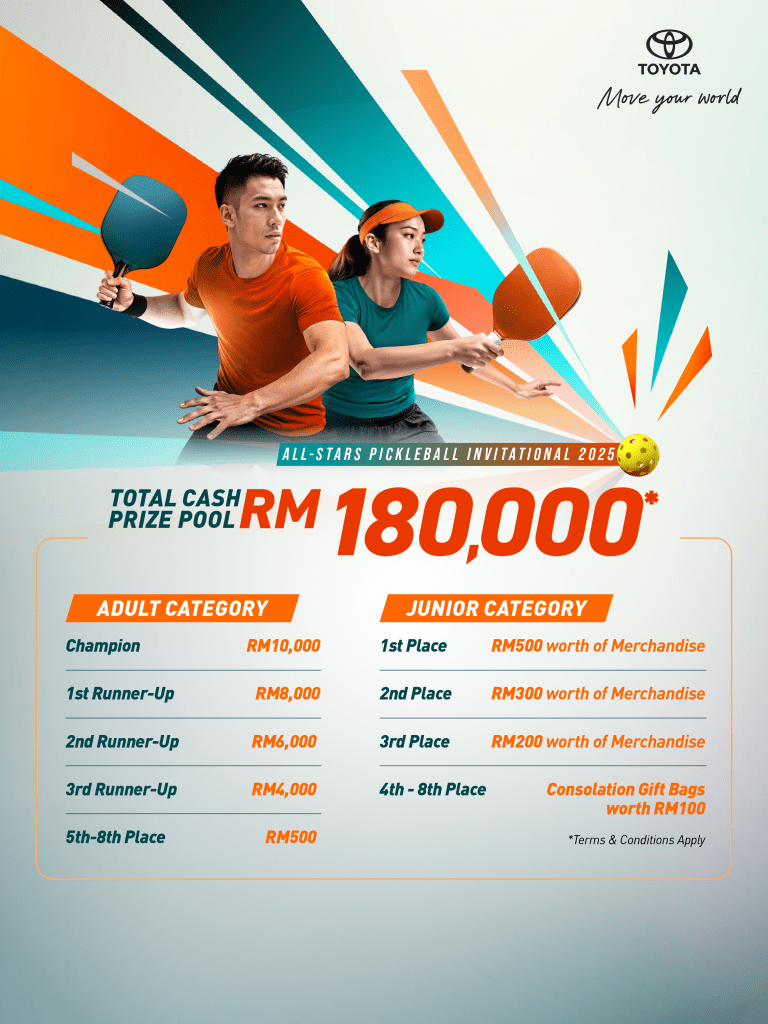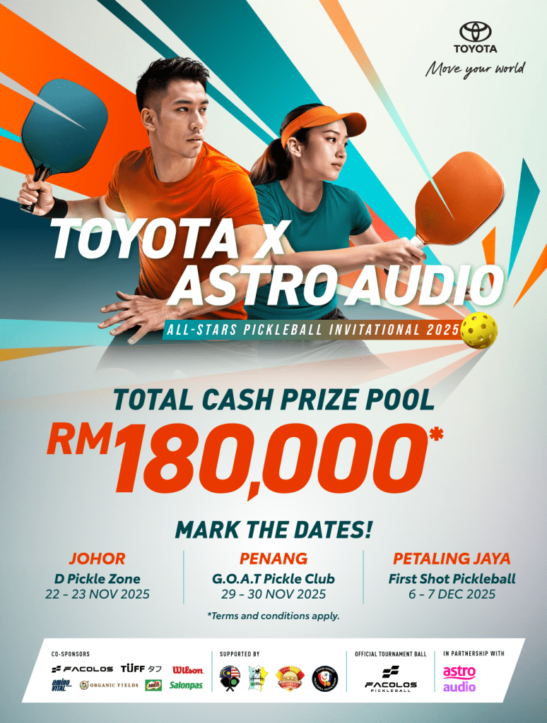 UMW Toyota Motor (UMWT) mengumumkan penganjuran acara sukan Toyota x Astro Audio All-Stars Pickleball Invitational 2025, satu inisiatif yang bertujuan mendekatkan semangat pergerakan dan komuniti kepada rakyat Malaysia. Acara ini merupakan sebahagian daripada falsafah jenama Toyota terkini, iaitu “Mobility for All” dan kempen “TO YOU” yang memfokuskan kepada mobiliti yang dibentuk mengikut keperluan dan gaya hidup masyarakat.