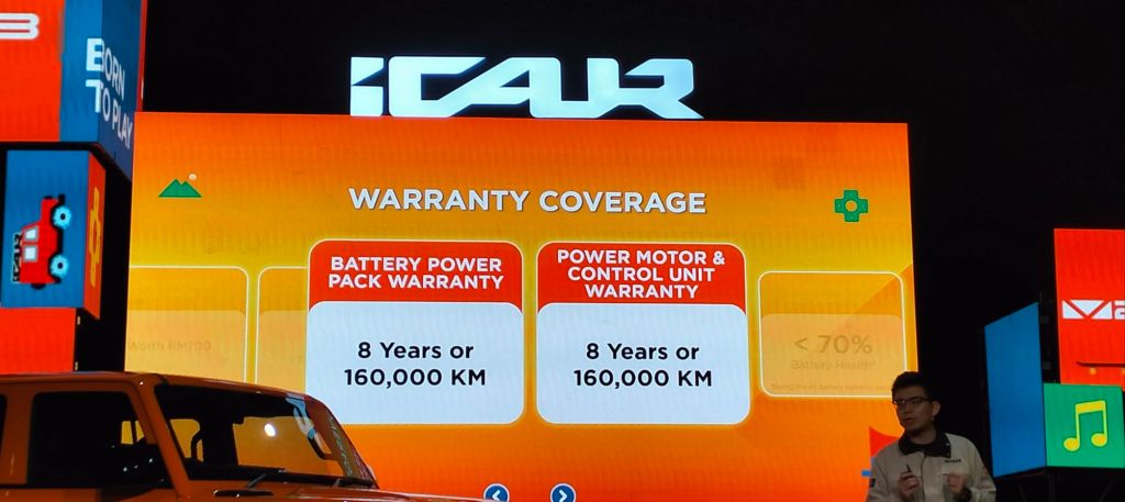 Ini termasuk jaminan kenderaan tujuh tahun atau 150,000 km, dan jaminan bateri serta unit pemacu lapan tahun atau 160,000 km, serta jaminan penggantian bateri sekiranya Keadaan Kesihatan (State of Health) jatuh di bawah 70% dalam tempoh jaminan.