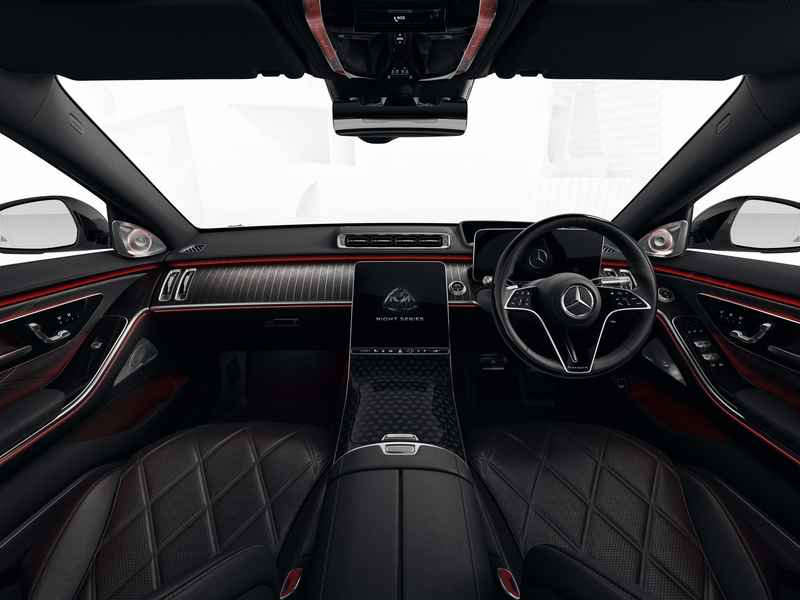 Kenderaan ini dilengkapi dengan pelbagai ciri mewah termasuk sistem bunyi sekeliling 3D Burmester®, sistem MBUX High-End Rear Seat Entertainment, tempat duduk eksekutif dengan fungsi urut betis, dan pakej E-ACTIVE BODY CONTROL untuk keselesaan pemanduan yang optimum.