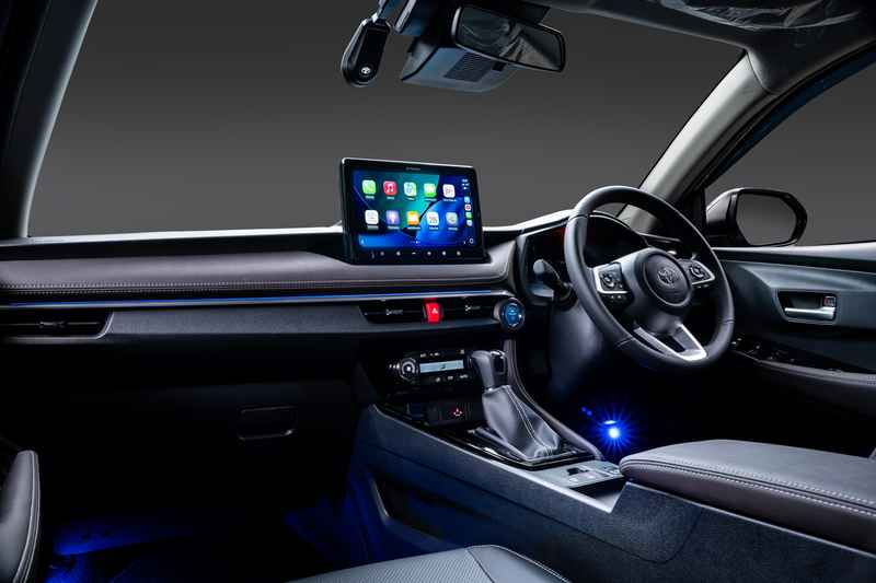 Di bahagian kabin, Vios HEV dilengkapi dengan sistem Audio Paparan 10.1-inci dan Paparan Pelbagai Maklumat (MID) 7-inci khas untuk hibrid bagi memantau aliran tenaga dan status bateri. Bagi peminat gaya pemanduan lebih dinamik, varian GR Sport menawarkan sistem ampaian yang ditala khas oleh Gazoo Racing, stereng kuasa elektrik yang lebih responsif, serta kemasan dalaman kulit suede dengan jahitan kontras.